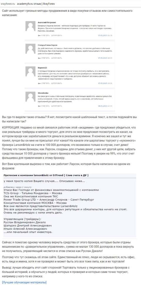 - Контора AcademyFX напрямую связана с жуликами Larson&Holz, Alpari и Forex Club
