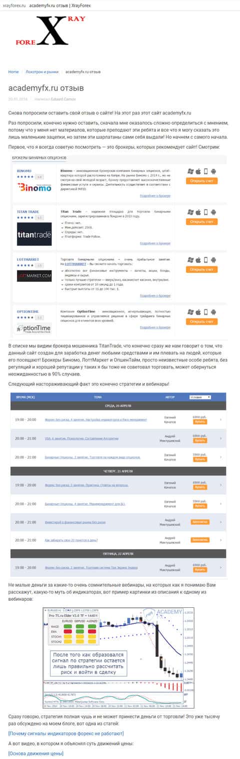Веб-портал xrayforex ru о подделке общественного мнения мошенниками AcademyFX