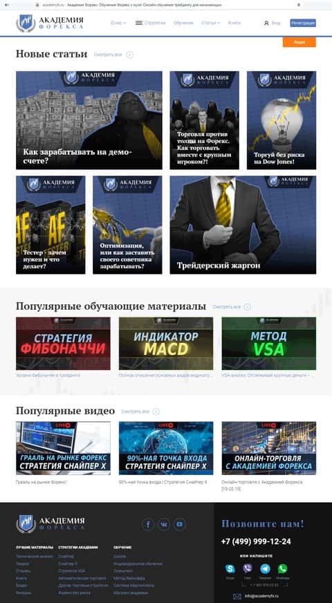 Что же по поводу сайта мошенников, то тут всё по обычаю всех контор аферистов, хоть и стоит отметить тот факт, что жулики AcademyFX пытаются разместить на сайте что-то кроме водянистых обещаний об огромных заработках. Кроме сведений о якобы своих успешных трейдерах, а точней проплаченных актёрах, жулики наполняют сайт разношёрстной информацией, пытаясь отвлечь клиента от того факта, что того скоро поимеют.