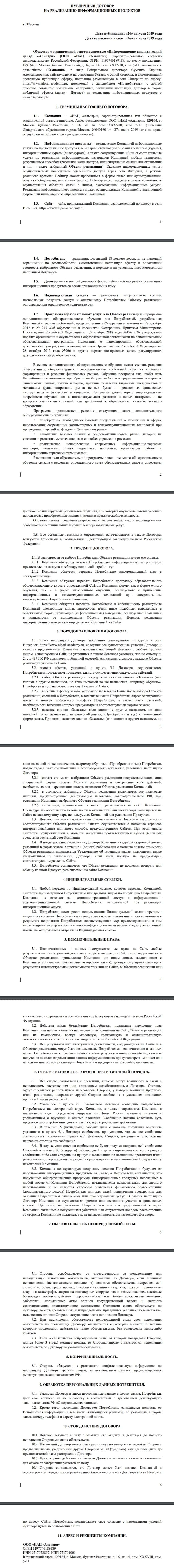 Клиентское соглашение школы финансовой грамотности Академия Альпари