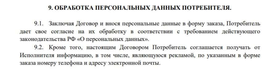 Раздел 9 говорит о том, что пользователь дает свое согласие на обработку персональных данных. Это значит, что компания будет заваливать его почту своей рекламой.