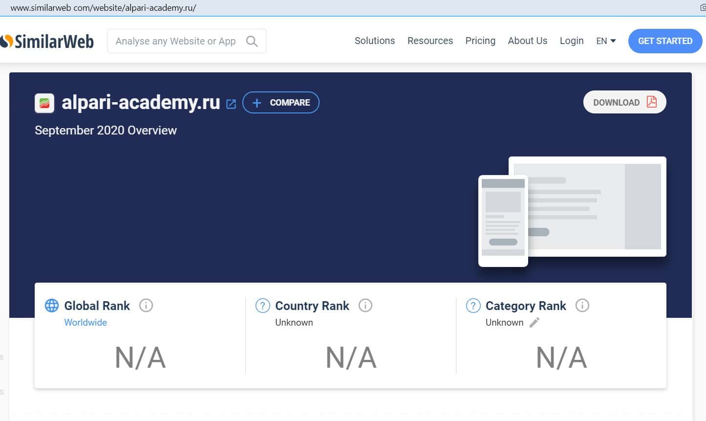 - Данные сервиса проверки трафика Симиларвеб о домене alpari-academy ru