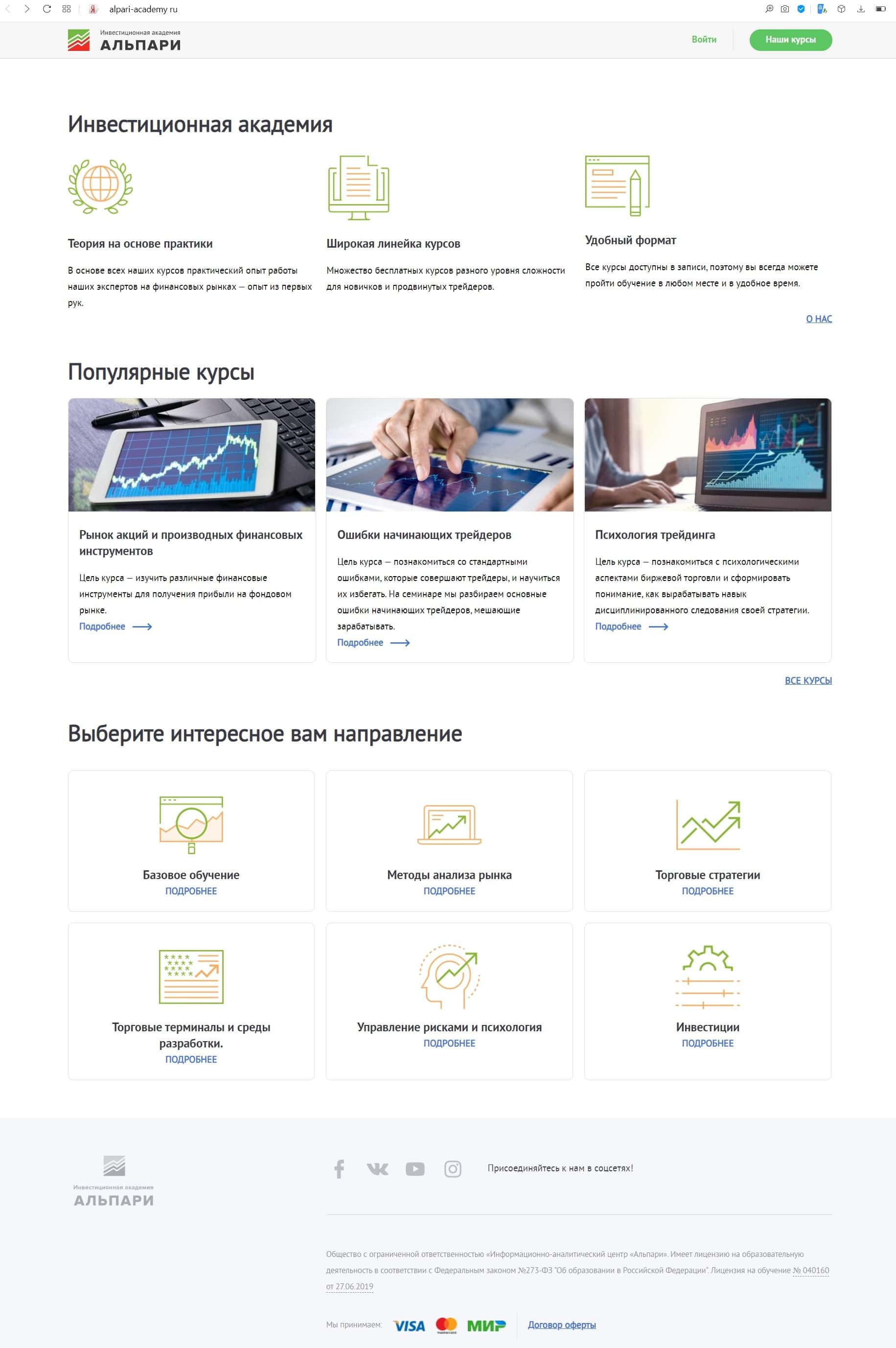 Как выглядит главная страница сайта организации AlpariAcademy Ru?
