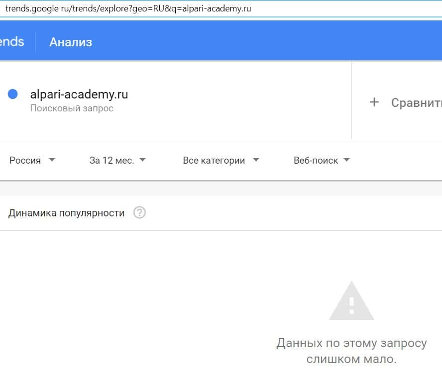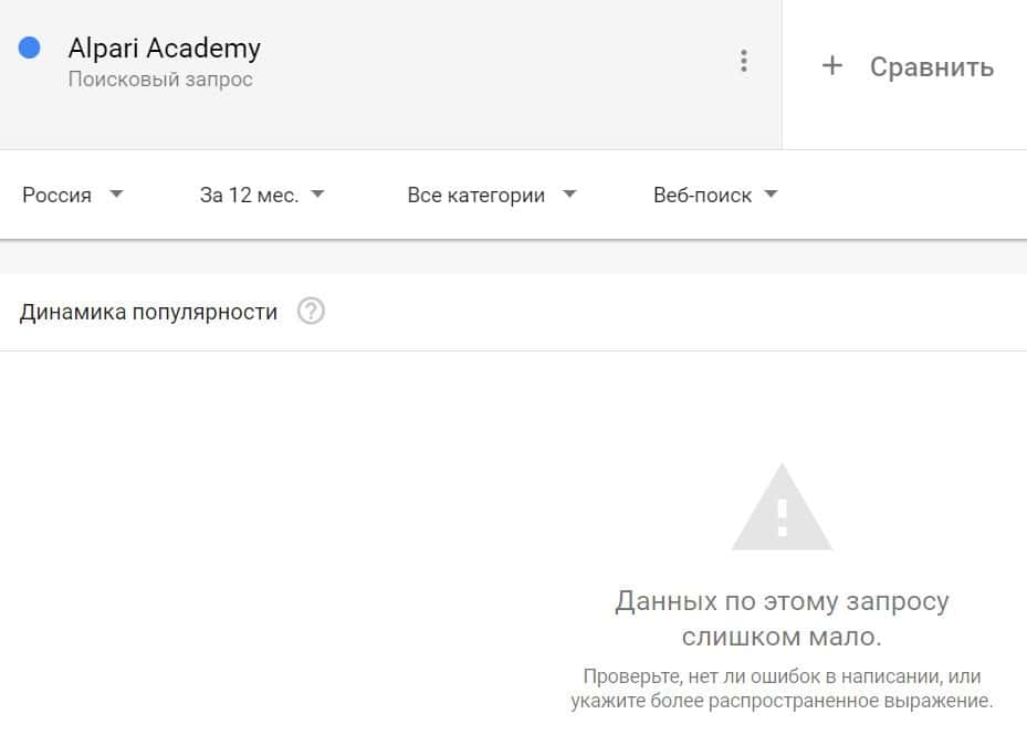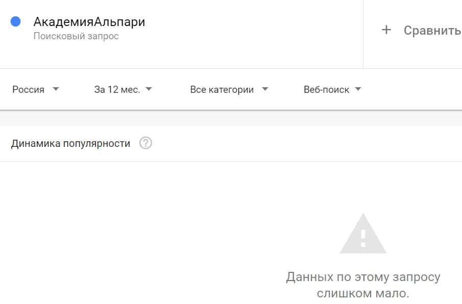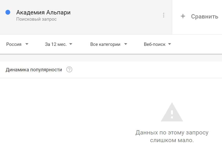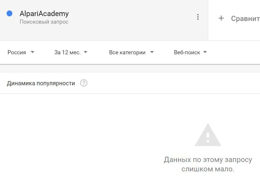 То же название, но написанное с пробелом на русском языке "Академия Альпари", люди не пытались найти в системе Гугл Тренд.