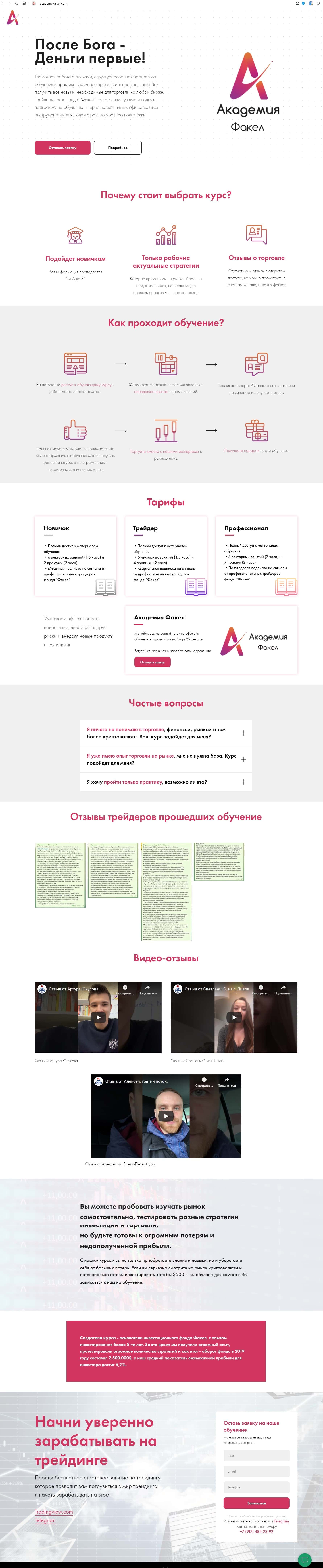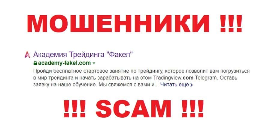 Академия Факел - это фейковая школа трейдинга, создатели которой бессовестно обманывают пользователей. Организаторы этого скам проекта утверждают, что они являются основателями инвестиционного фонда с огромным оборотом, но доказательств этому никаких нет. Они призывают людей записываться к ним на курсы и проходить обучение, которое должно привести их к богатству. На самом деле это они обогащаются за счет наивных клиентов, которые верят, что можно зарабатывать в такой сомнительной сфере, как трейдинг, а также, научиться этому. Владельцы поддельной школы сначала соберут деньги за курс, а потом отдадут новичка какому-нибудь псевдоброкеру, который также будет разводить их на деньги, подлежащие сливу. В итоге эти лохотроны обдерут клиента по максимуму, а он не сможет ничего предъявить, так как все эти конторы нелицензионные. Держитесь подальше от конторы AcademyFakel, лишающей пользователей сбережений!