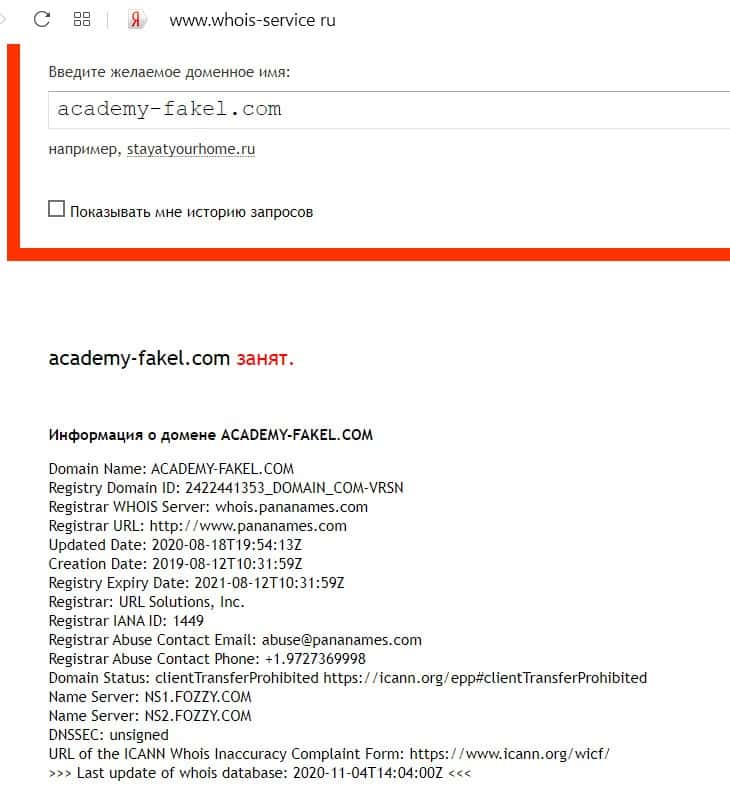 - Кому принадлежит доменное имя сайта academy-fakel com?