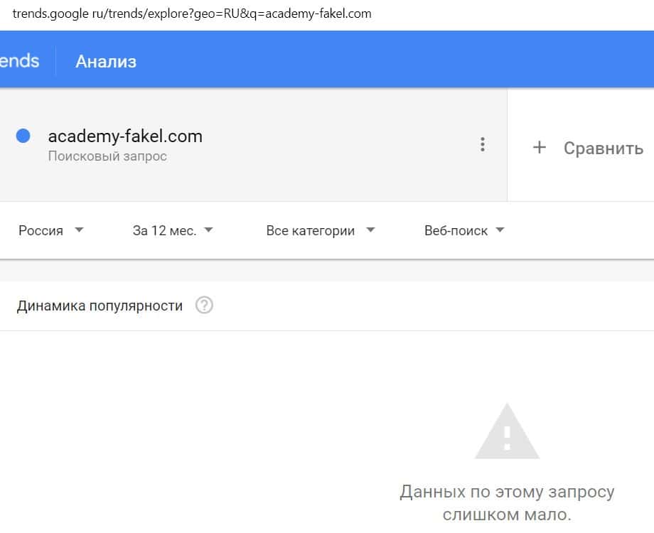 То же название, но написанное с пробелом на русском языке "Академия Факел", люди не пытались найти в системе Гугл Тренд.