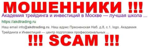 Академия Трейдинга и Инвестиций - мошенническая контора по облапошиванию клиентов, которая якобы предлагает обучение и доступ к торговле на валютном рынке Форекс, а на самом деле все это просто фикция, чтобы завлечь как можно больше лохов. AkdTrading по сути занимается поиском потенциальных жертв мошенничества для контор ЭХАНТЕ (EXANTE) и Церих. Также стоит заметить, что Экзанте (Exante) - крайне опасный мошенник во всемирной паутине. Берегитесь этого лохотрона, потому что он орудует в основном на территории Российской Федерации.