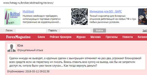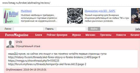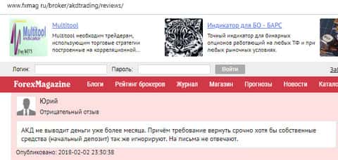 - Отрицательный отзыв о кухонном брокере AkdTrading