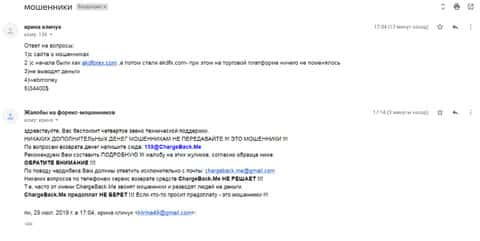 Данная жалоба пришла от человека, который стал жертвой мошенническую контору AKD FX. Он хочет вывести вложенные средства, но сделать этого не может. Пострадавший пытался связаться со службой поддержки, но они не отвечают, поэтому пришлось рассказать все в службу ChargeBack.Me