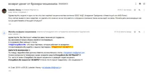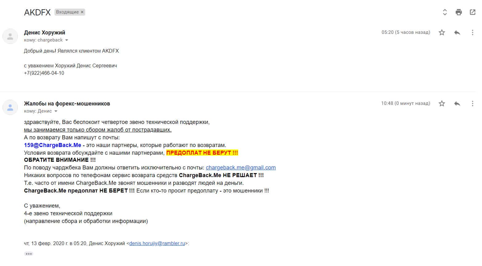 Если мошенники из АКД ФХ Вас тоже развели, то обязательно расскажите о данном факте нам. Оставьте Ваш электронный адрес в форме чуть далее, с Вами установят контакт.