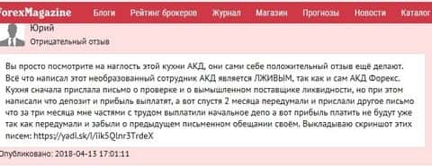 Кухонный брокер АКД Форекс с радостью повесит все собственные ошибки на клиента