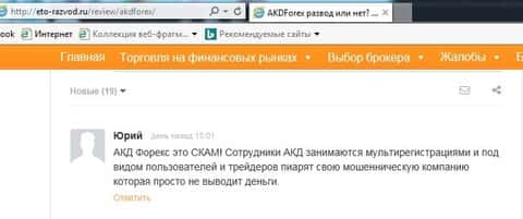 Брокер-аферист АКД Форекс проплачивает положительные отзывы в сети