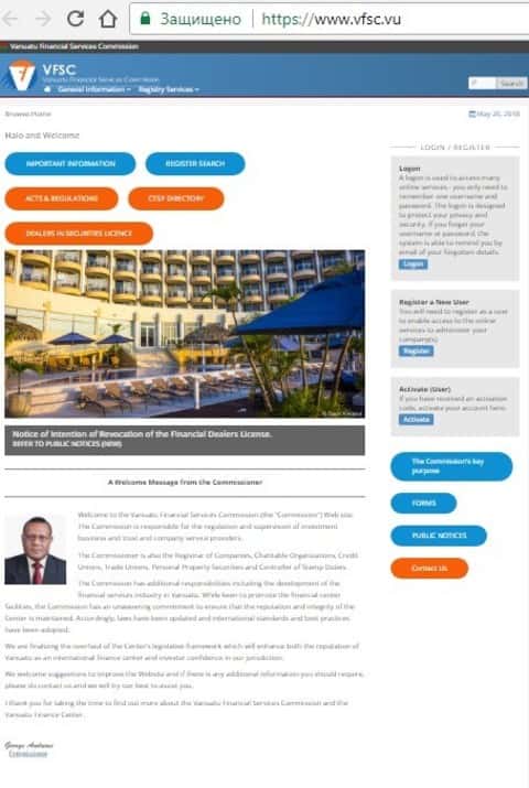 На сайте брокера-мошенника АKD Forex мы видим ссылку на некоего финансового регулятора VFSC, который якобы контролирует деятельность кухни АKD Forex и, соответственно, защищает интересы ее клиентов.