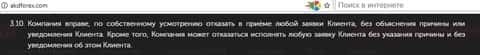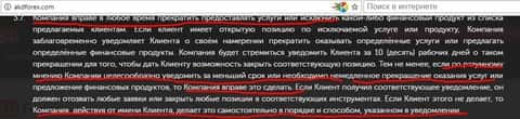 Несколько завуалированно, но достаточно конкретно, пунктом 3.7 дилинговый центр АKD Forex оставляет за собой право аннулировать сделку клиента в любое удобное для компании время, а то и вообще прекратить обслуживание. Это основа данного пункта. Все остальное - обычное юридическое словоблудие.