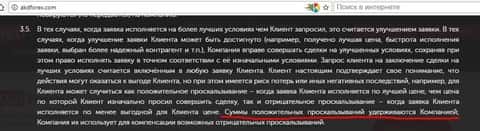 Основываясь на пункте 3.10 Условий проведения операций, брокер-аферист АКД Форекс может легко не принять у трейдера профицитную сделку. Без объяснения причин. Понятно, что в данном случае нечистоплотный форекс-брокер АКД Форекс развязывает себе руки для увеличения собственной прибыли, которая у всех кухонь состоит из слитых трейдерских депозитов.