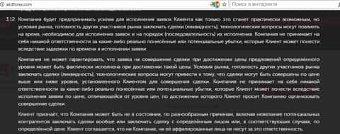 Ниже аферист от рынка Форекс АКД Форекс снимает с себя вообще любую ответственность перед трейдером. Такое ощущение, что у дилингового центра АКД Форекс есть только права, а у его клиентов - одни обязанности.