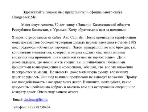 - Жалоба на Ако Капитал - клиент утратил 250 долларов