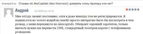 - Очередная жалоба на Ако Капиталс от клиент, пострадавшего на несколько сотен долларов