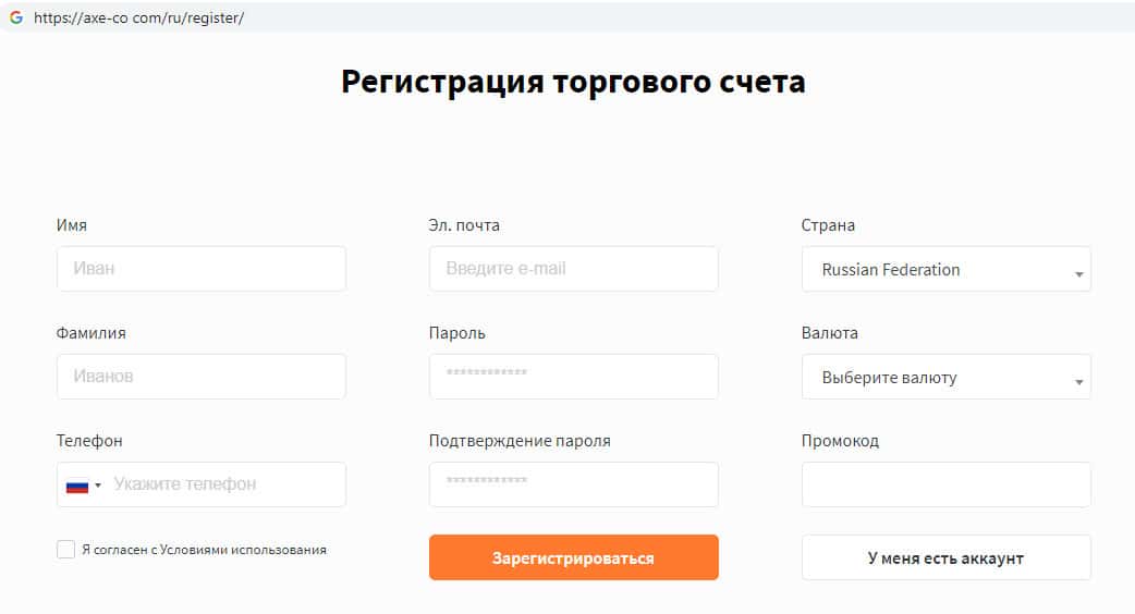 - Первоначальный пользовательский взнос на сайте шуллеров AXE-CO Com составляет 200 долларов