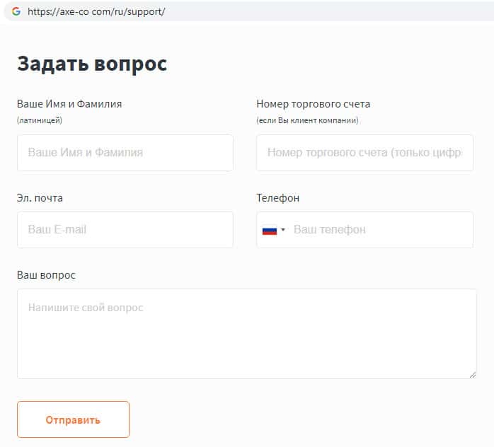 Скам-контора Аксе и Ко на своем официальном сайте ведет сбор данных о клиенте и предоставляет бланк под предлогом якобы возможности обратной связи на сайте, обещая после чего связаться с пользователем. Данный бланк для сбора данных о пользователях не такой уж и безобидный, как кажется на первый взгляд.