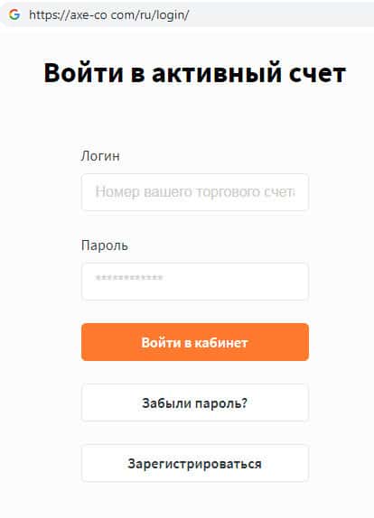 Ваши личные данные на сайте мошеннической организации Аксе и Ко никак не защищены, поскольку для входа в кабинет необходимо указать только логин и пароль, которые очень легко рассекретить. Ваши личные данные для входа в кабинет всегда хранятся на сайте жуликов AXE-CO Com, которые могут сами слить Ваши денежные средства.