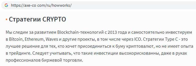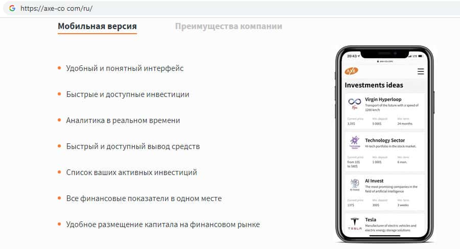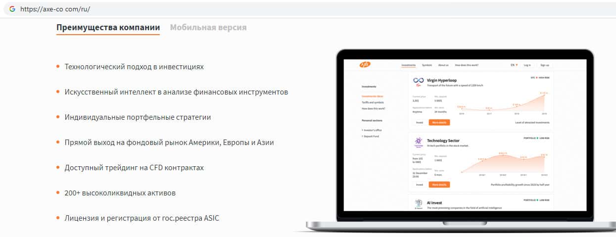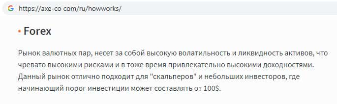 - Финансовые инструменты на сайте инвестиционного лохотрона AXE-CO Com