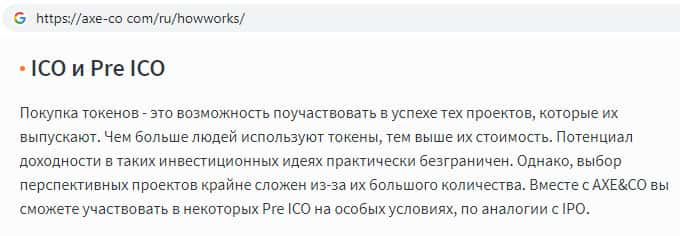 axe-co com - официальный интернет-ресурс лохотрона Аксе и Ко
