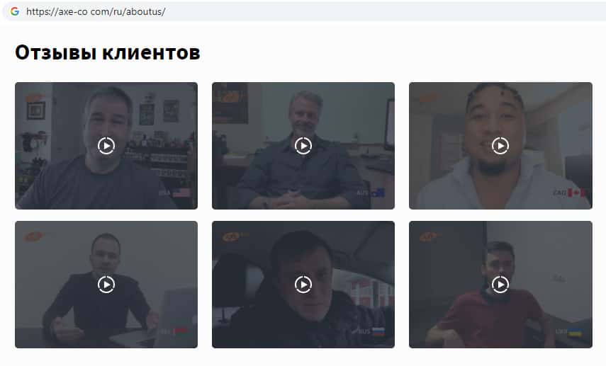 Аферисты AXE-CO Com опубликовали фальшивые пользовательские видео-отзвывы на своем сайте