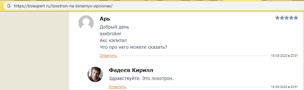 - Отзыв реального пользователей в сети о кухне лохотронщиков Аксе Капитал