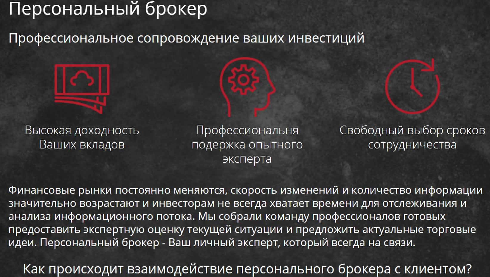 Далее они продолжают впаривать о том, что их многолетний успешный опыт ведения инвестиций помог сформировать высокие стандарты качества и так далее. В целом льют воду для заполнения сайта и чтобы плавно навешать лапшу на ушли наивному клиенту, который пришел для получения прибыли.