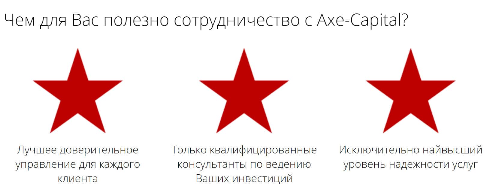 - Накрученные плюсы работы с подвальной организацией Аксе Капитал