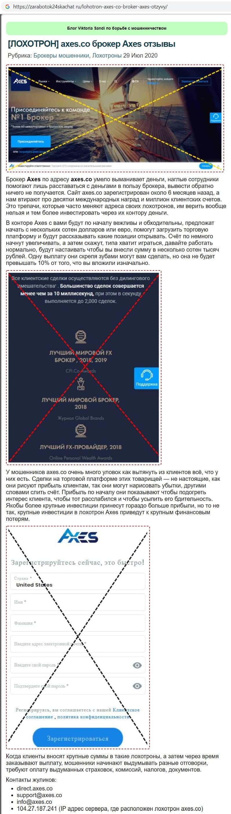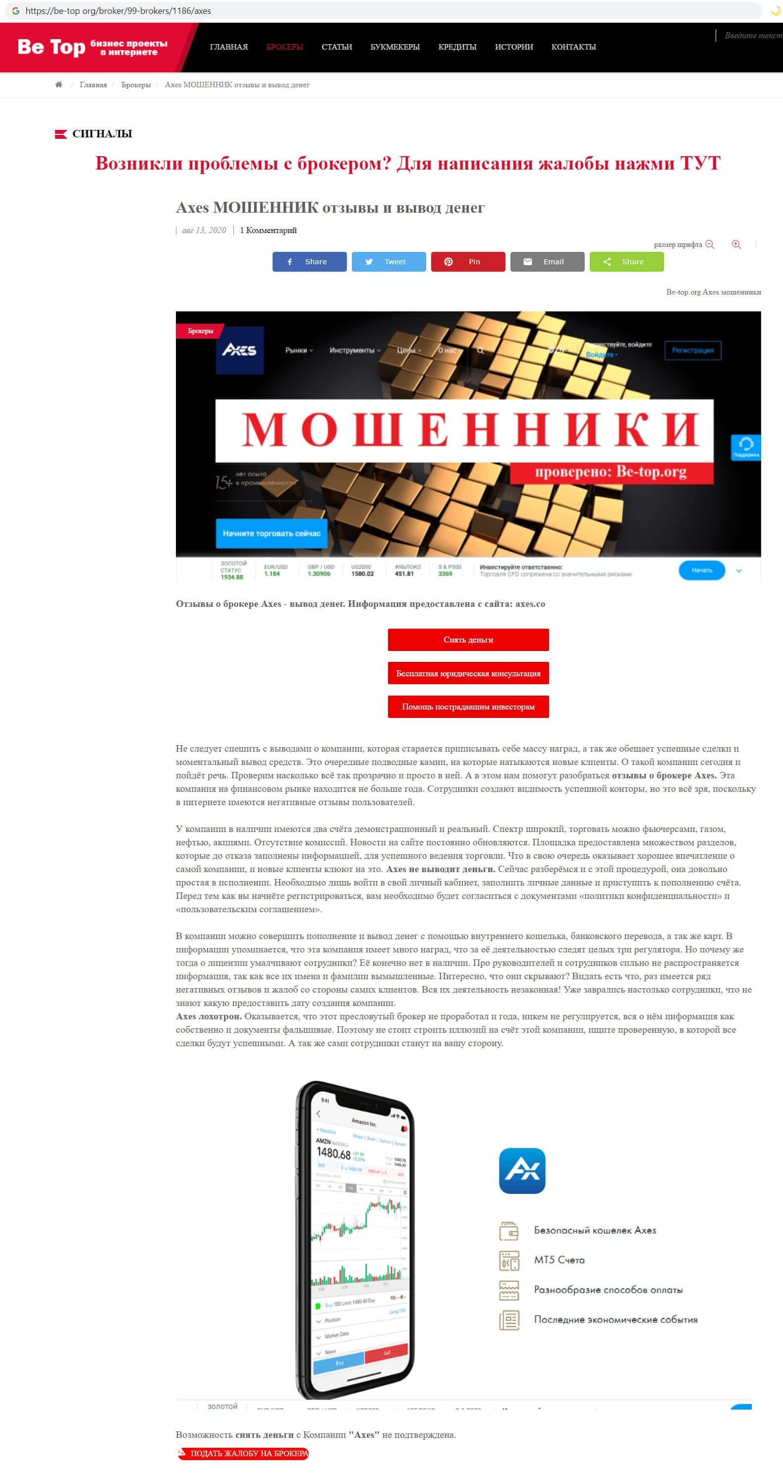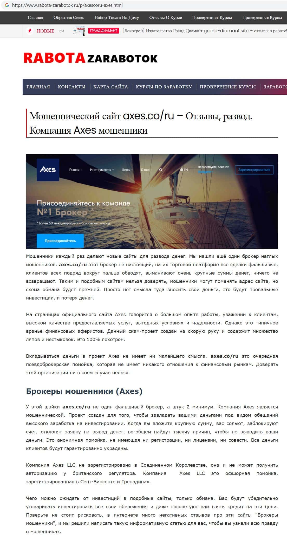 Ещё мы нашли большую статью о компании кидал Axes Co на сайте otziv-broker com. В статье сайт указал, что это обычный лохотрон, который просто разводит своих клиентов.