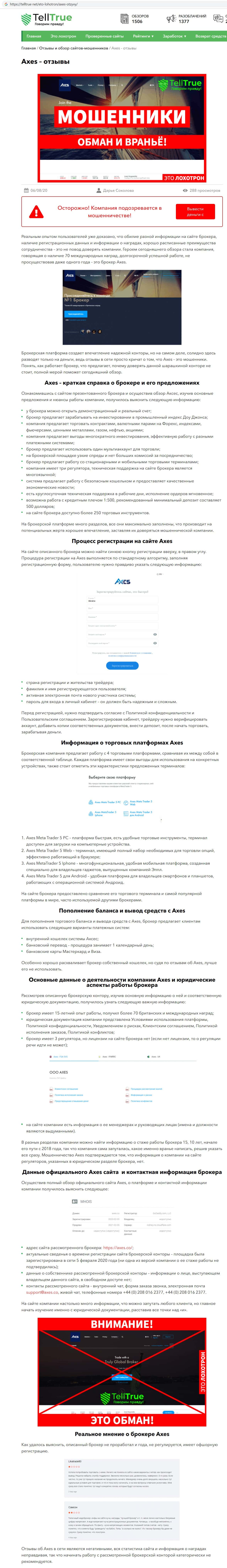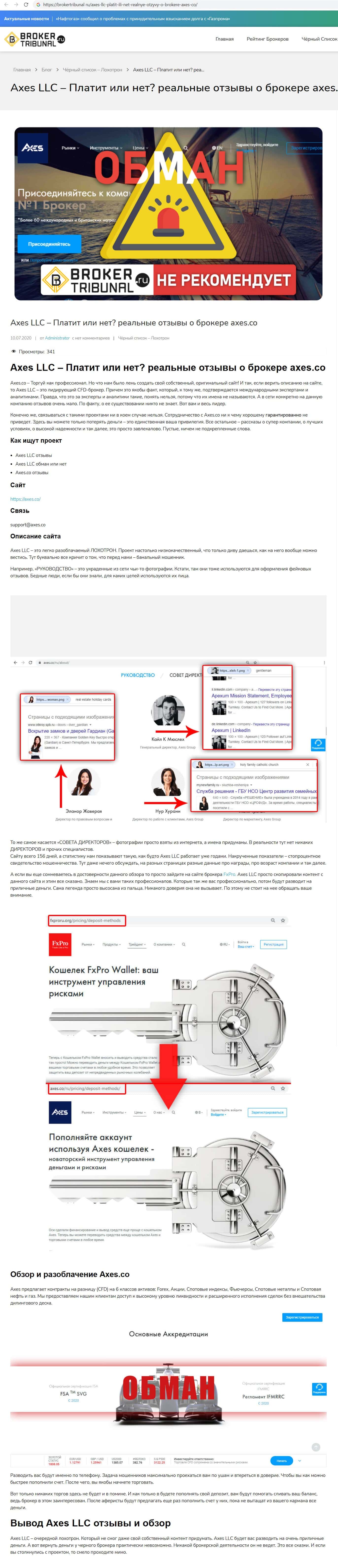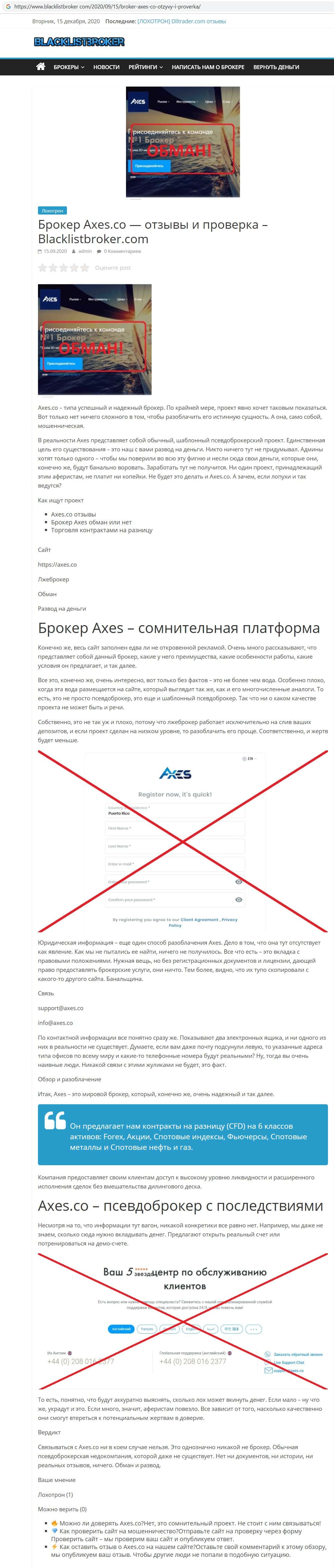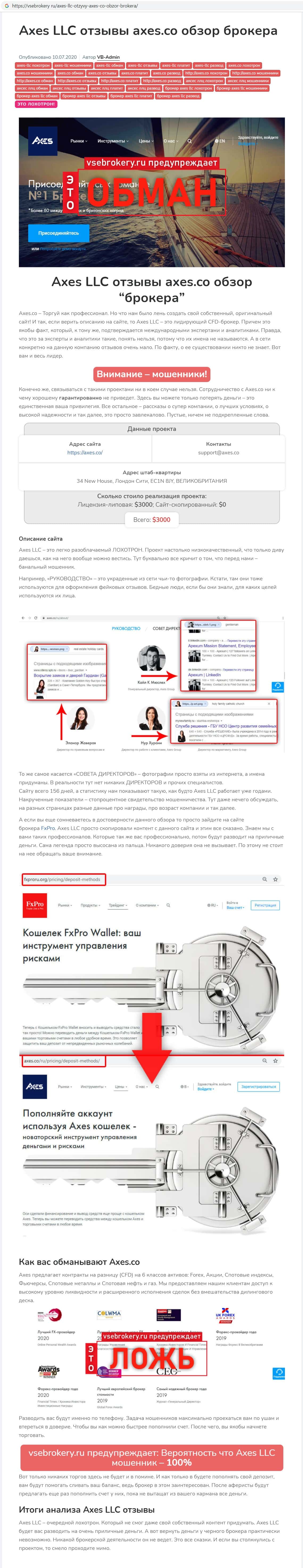 Ещё мы нашли большую статью о компании кидал Axes Co на сайте otziv-broker com. В статье сайт указал, что это обычный лохотрон, который просто разводит своих клиентов.