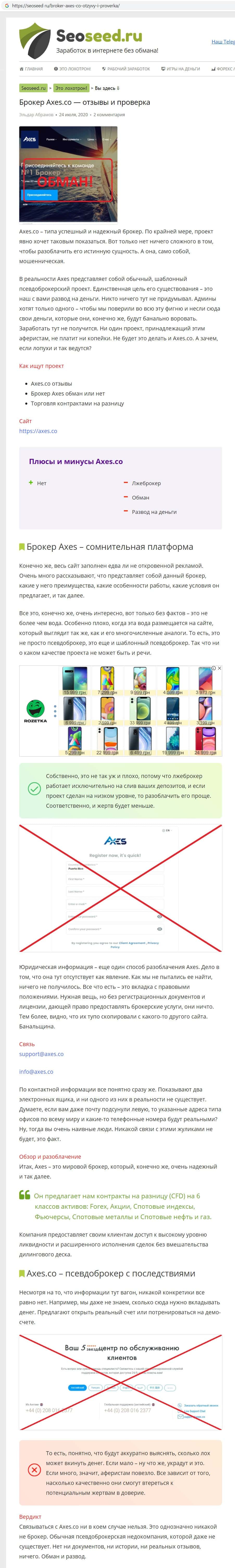Сайт seoseed ru опубликовал статью, которую посветил аферистам Axes Co. Интернет ресурс утверждает, что связываться с данной организацией ни в коем случае нельзя.