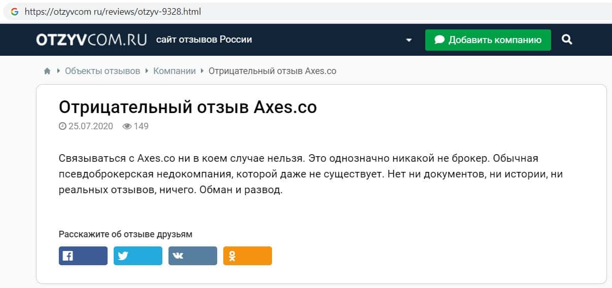 - Мнение интернет ресурсов о компании мошенников Axes Co
