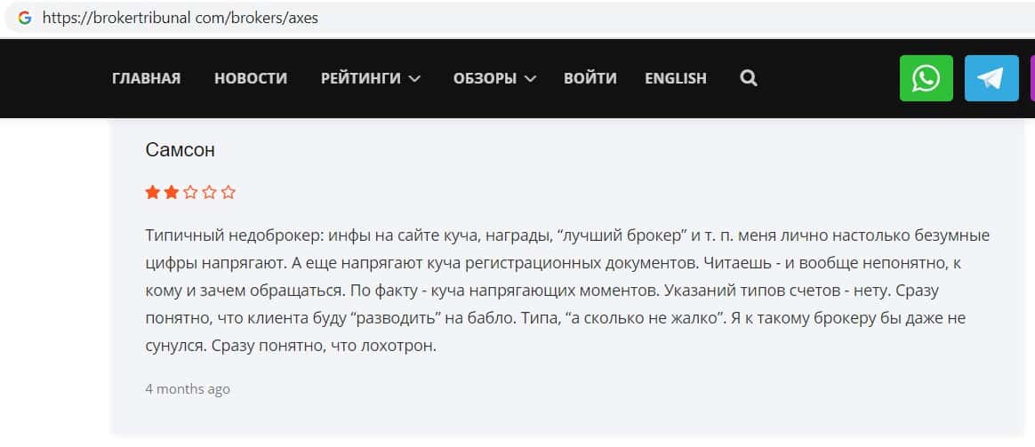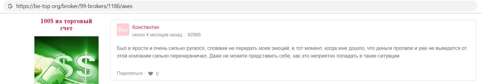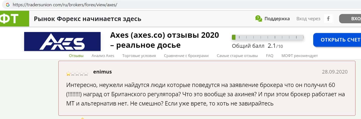 brokertribunal com - сайт с отзывами о недоконторе Axes Co