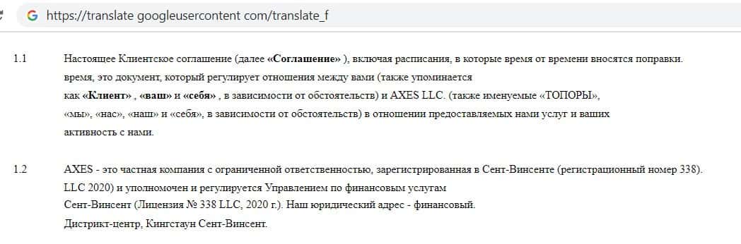 Клиентское соглашение фирмы финансовых жуликов Axes Co