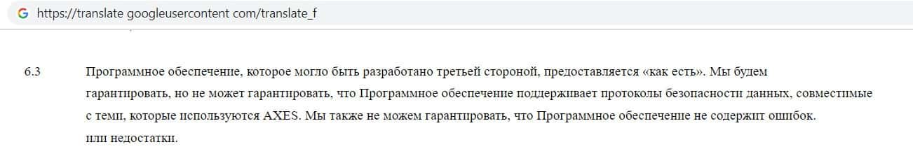 Так же контора махинаторов Axes Co указала, что программное обеспечение компании разработано третьей стороной и может работать неправильно или содержать ошибки.