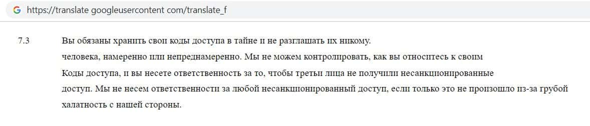 В данном пункте аферисты Axes Co указали, что клиент отвечает за сохранность данных для доступа в его аккаунт, но кидалы уже имеют доступ к аккаунту и могут снять все деньги.