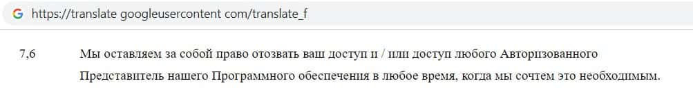 А вот в этом пункте соглашения недоконтора Аксес указала, что имеет право заблокировать абсолютно любого клиента по какой либо причине или по собственной инициативе.