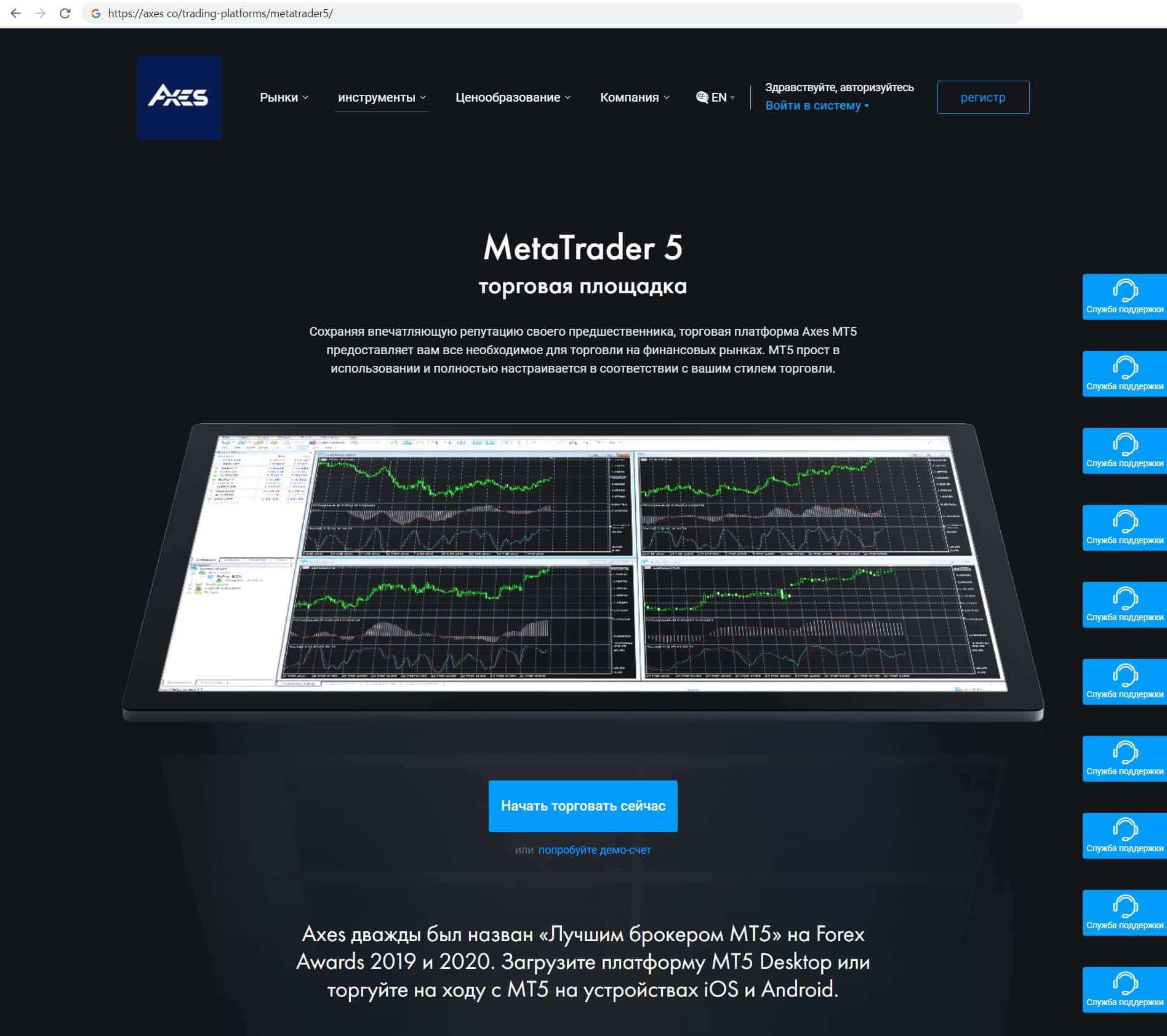 Недоконтора Axes Co указала, что использует платформу MetaTrader5, которую успешно используют все кидалы, а так же она является продуктом мошеннической фирмы MetaQuotes.