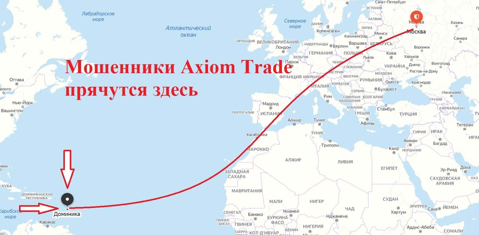 На веб-сервисе компании Аксиом Трейд указана информация о том, что юридическое лицо компании зарегистрировано в оффшоре, а именно островном государстве Доминика.