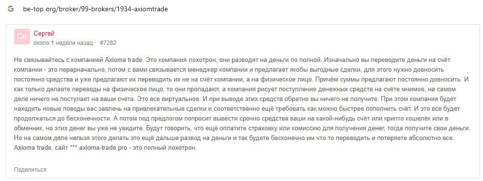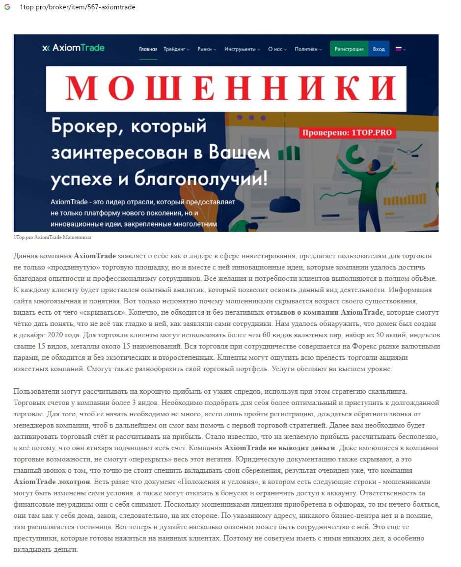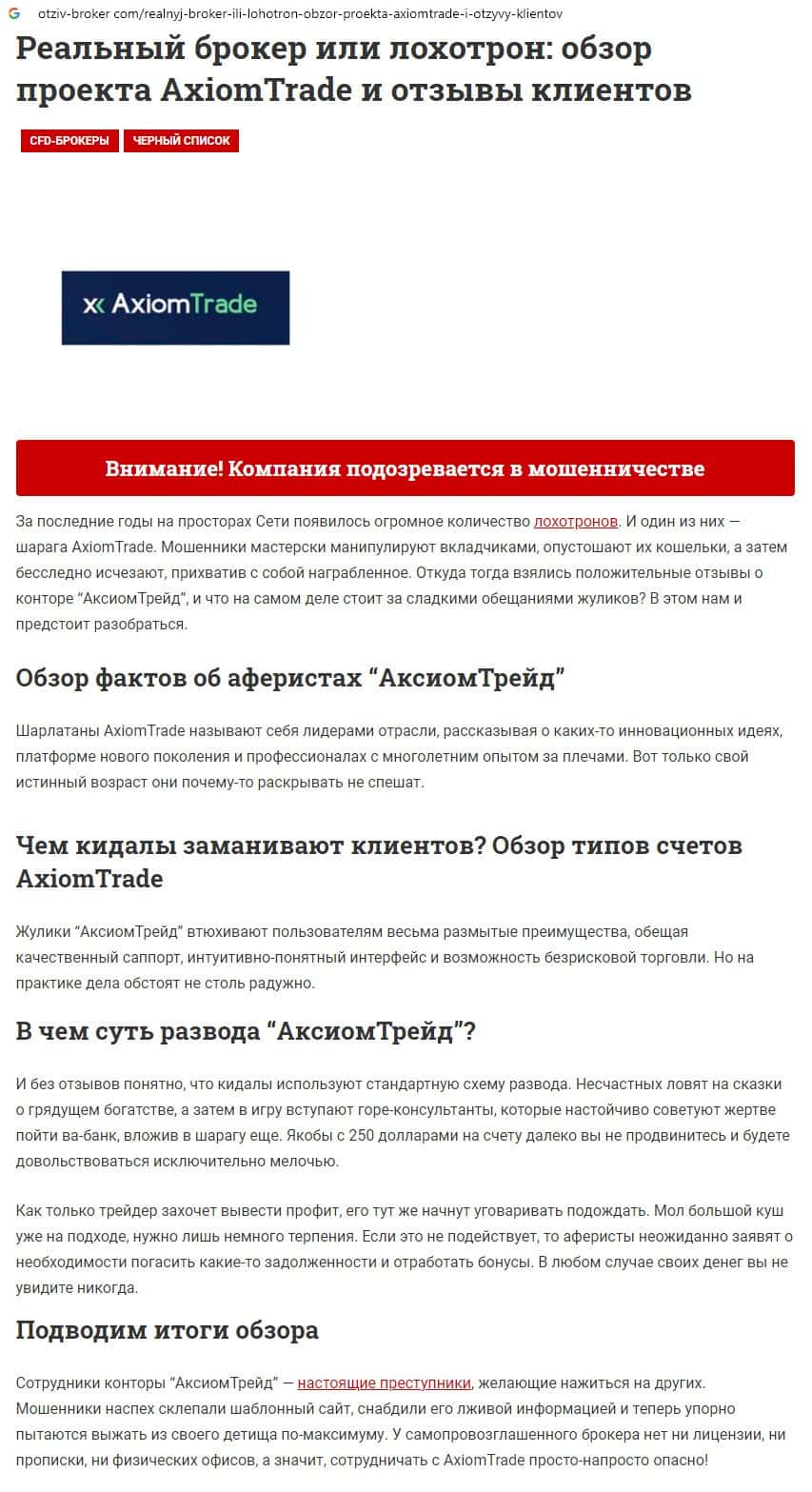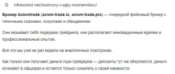 Аксиом Трейд - обзоры аферистов на других интернет-порталах