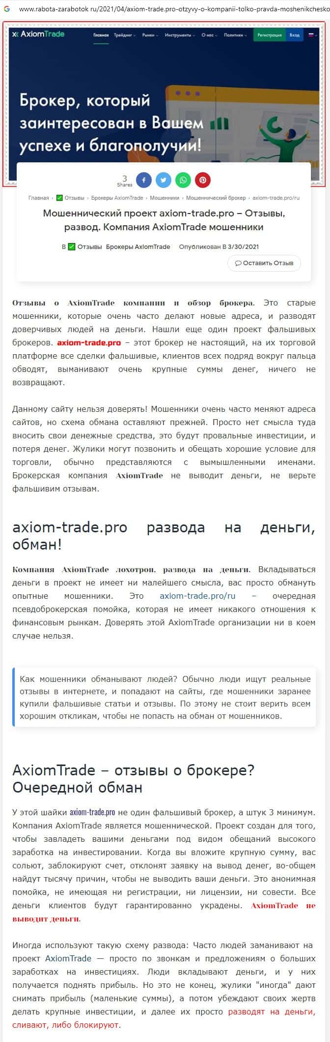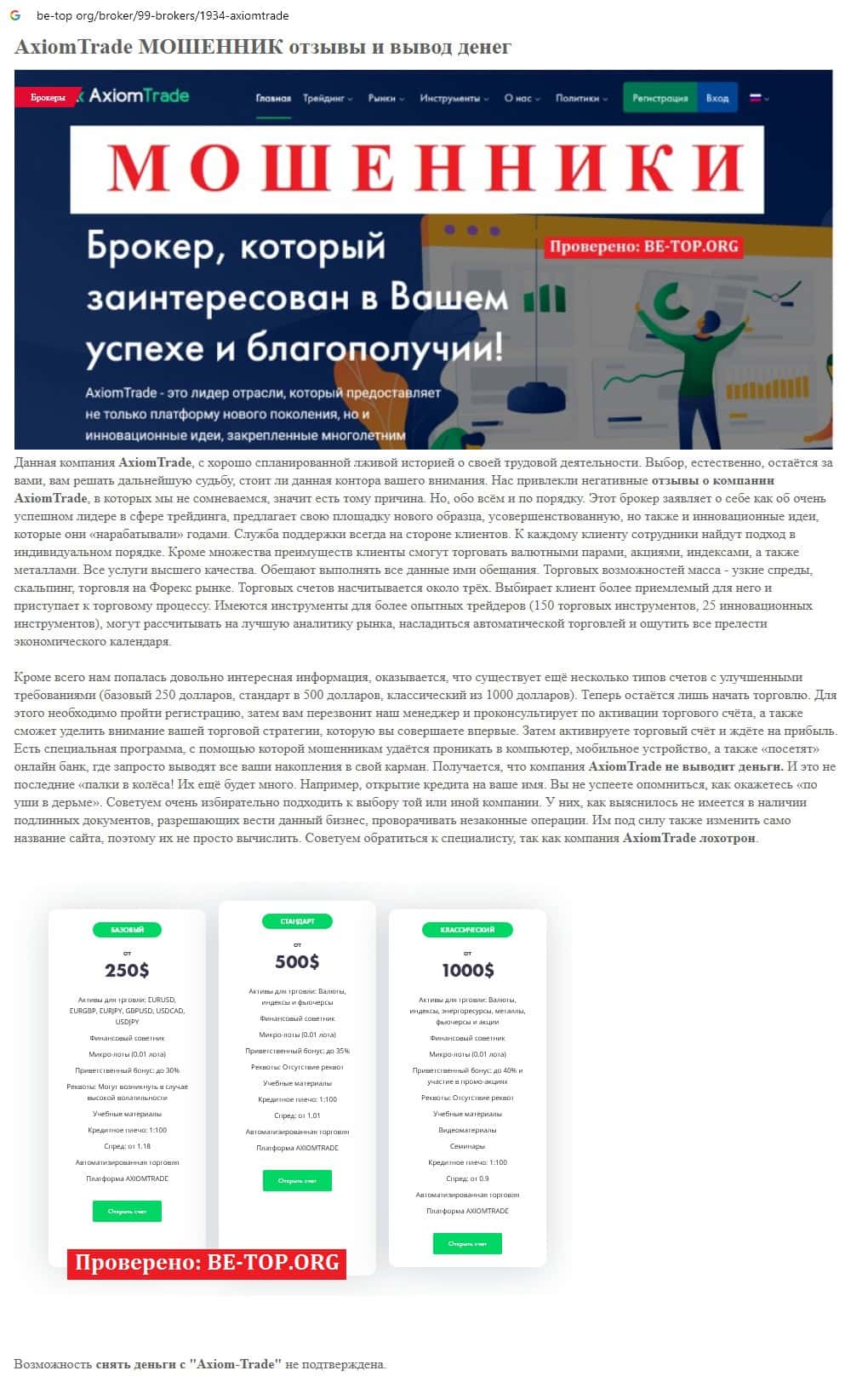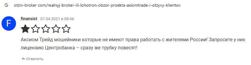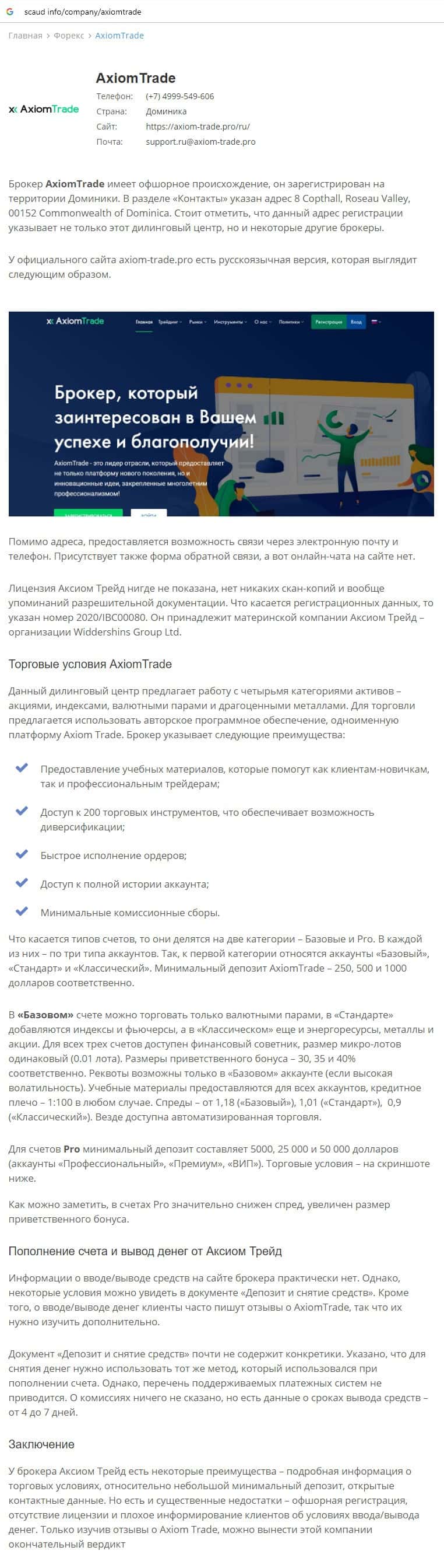 Аксиом Трейд - обзоры аферистов на других интернет-порталах