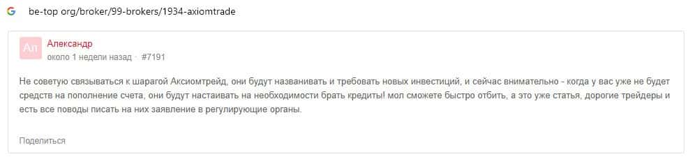 - Аксиом Трейд - обзоры аферистов на других интернет-порталах