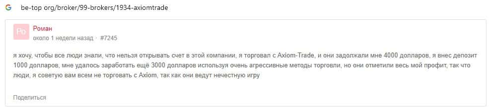 - Отзывы о скам-организации Axiom Trade, ныне присутствующие в сети