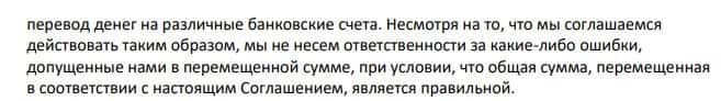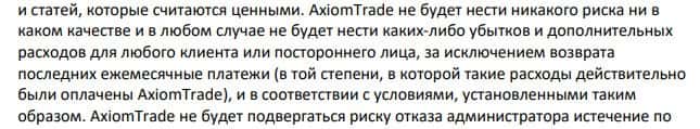 Согласно тому, что аферисты пишут в соглашении, компания Аксиом Трейд не несет никакой ответственности за не полученную прибыль клиентом, а также за возможные убытки.
