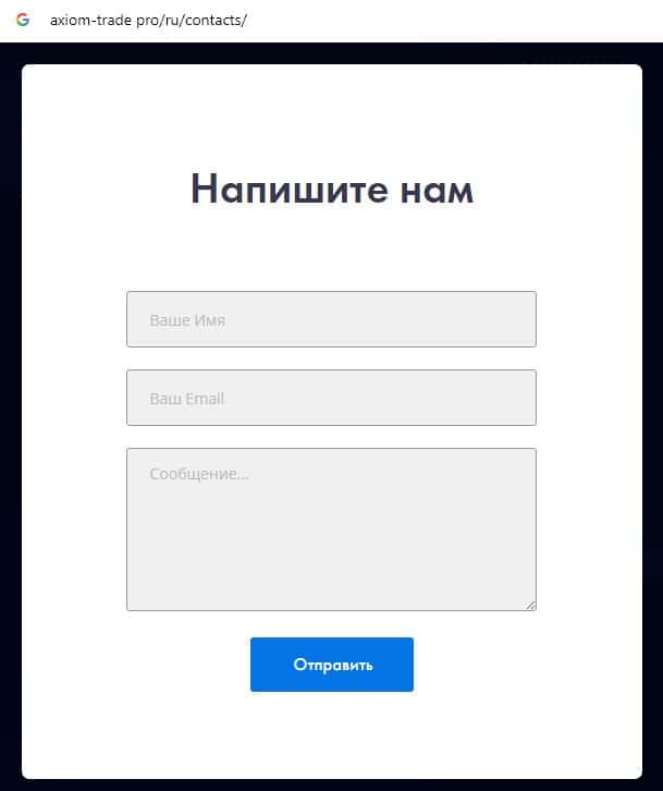 Жулики Axiom Trade ведут сбор данных о посетителях своего дырявого сайта, просят указать свой адрес электронной почты в качестве обратной связи.