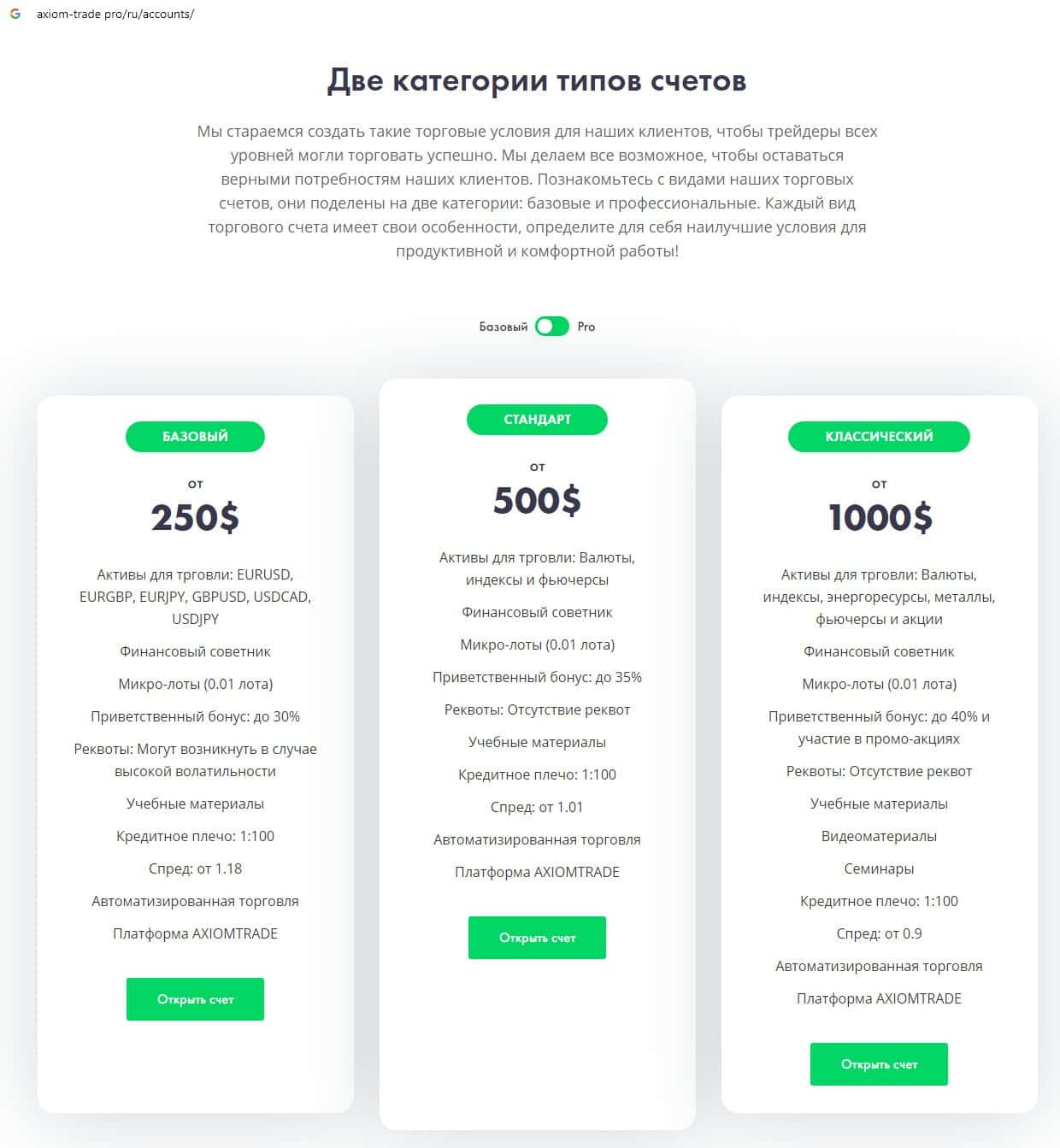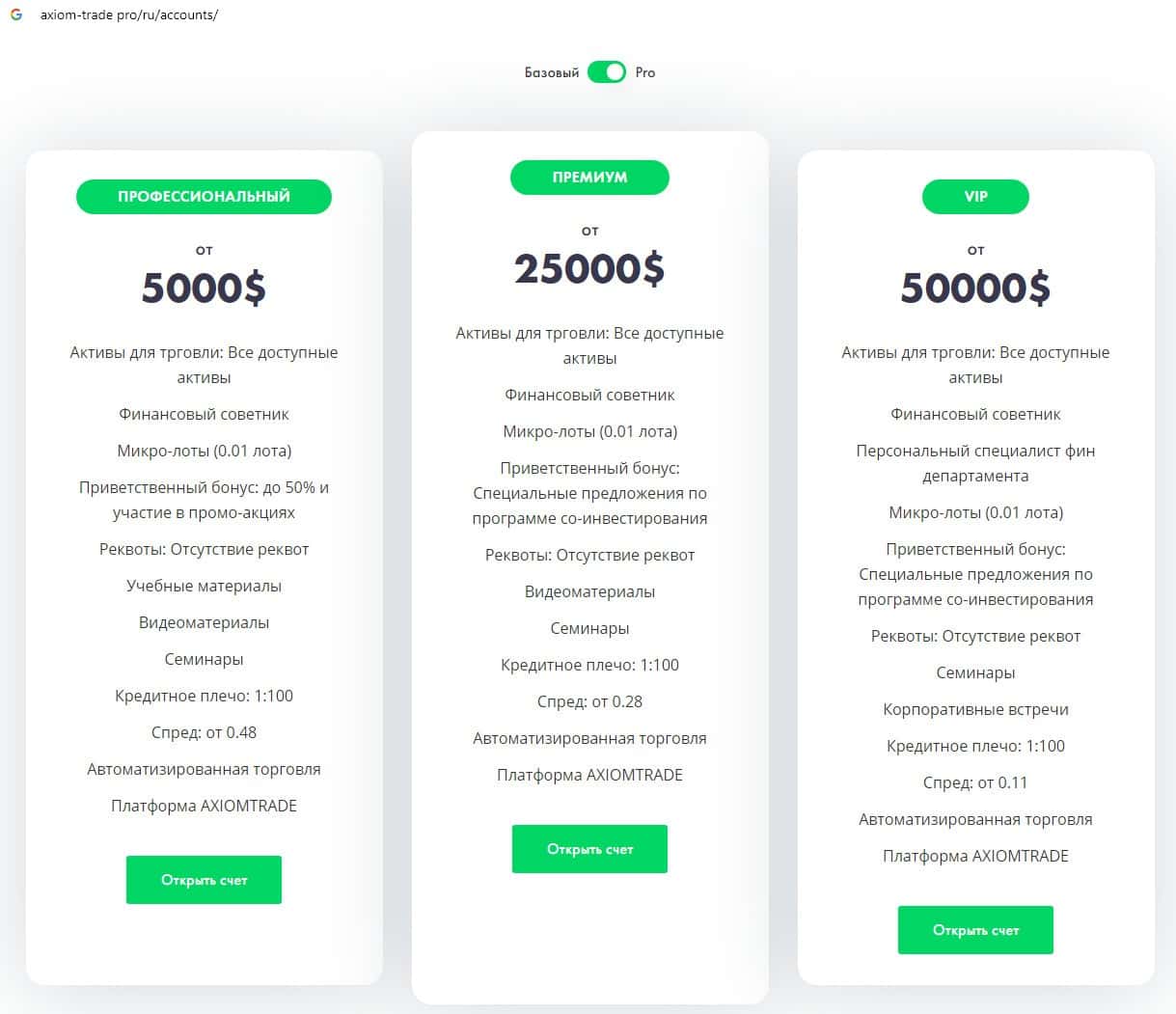 - Типы торгового счета на интернет-портале жуликов Axiom Trade